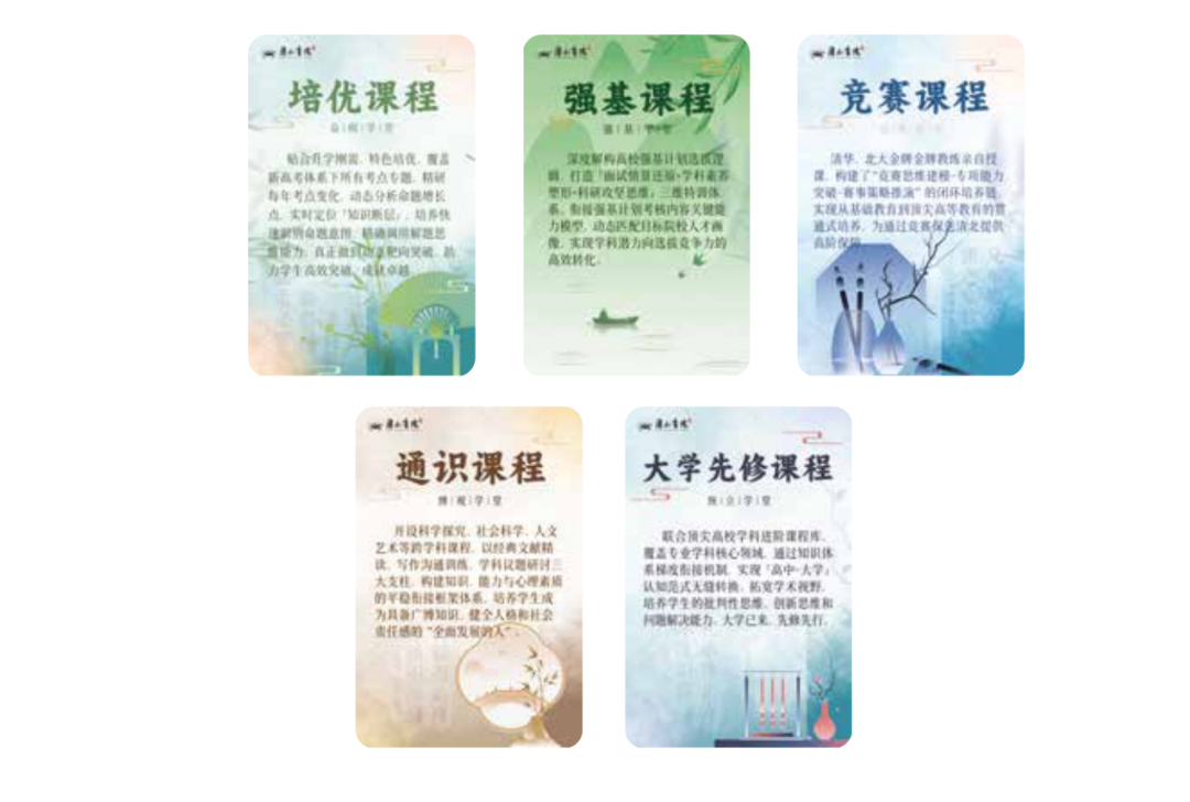 书院以构建高端智力资源聚合平台为核心模式,通过整合清华、北大等顶尖学府资源,构建由特级教师和金牌教练组成的专家智库,为学校注入稀缺的顶级教育资源。在此基础上,打造“五大学堂”体系,覆盖培优、强基、竞赛、通识和大学先修课程全场景,分层次、分环节输出数字化教育资源和配套服务。